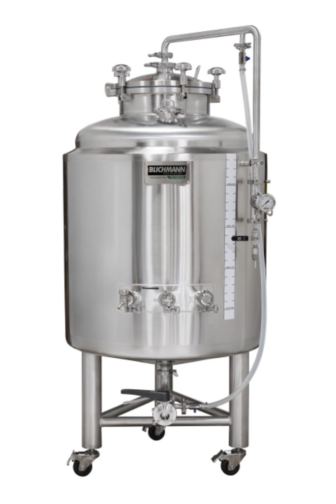 3 front-mounted 1.5” tri-clamp ports (optional dial type thermometer, carbonation stone, 1.5″ tri-clamp cap)