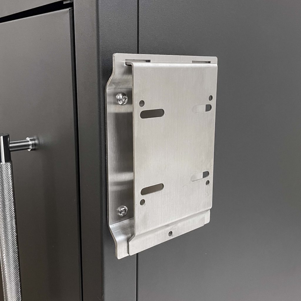 Bolt-on cabinet integration — Cabinet-side bracket attaches quickly to pre-drilled points—no drilling required. Pump-side plate uses standard bolt holes on most pumps.